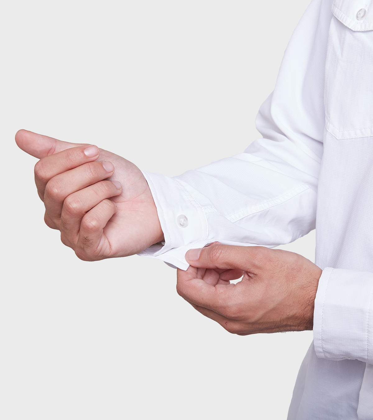 - Bolsillos superiores con botón y ojal.